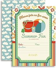 Beach Summer Fun Birthday Party Fill in Invitations set of 10 with envelopes Perfect for Summer birthdays