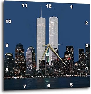 3dRose dpp_154708_3 ニューヨークシティ イブニング スカイライン ツインタワー 壁掛け時計 15x15インチ