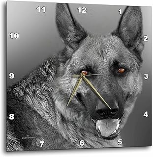 3dRose dpp_52254_3 ジャーマンシェパード犬 白黒 色付き写真壁時計 15x15インチ