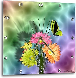 3dRose DPP_17831_3 彩色デイジーと蝶 壁掛け時計 15x15インチ