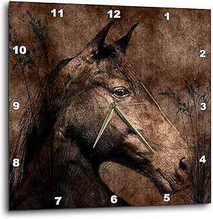 3dRose DPP_127615_3 草の中の馬 ウェスタン ブラウン グランジとチャコール 壁掛け時計 15x15インチ