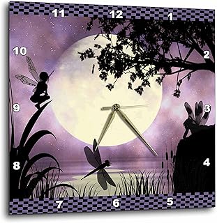 3dRose dpp_35668_3 妖精とトンボ 紫の月壁時計 15x15インチ