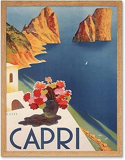 Travel Tourism Italy Capri Island Sun Flowers Sea Art Print Framed Poster Wall Decor 12X16 Inch 旅行観光イタリア島フラワーズポスター壁デコ