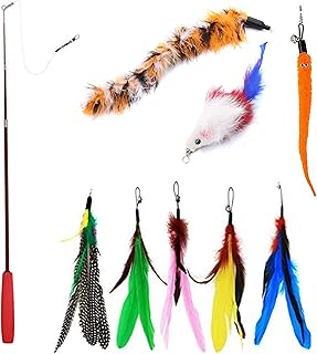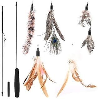 Pssopp 猫じゃらし 釣り竿 羽 遊び道具 羽おもちゃ 羽根 運動不足 ストレス解消 ペット用品 ペットおもちゃ 猫を運動させる キャット玩具 耐久性 プレゼント 猫遊び 天然鳥の羽棒鈴付き カラフル柔らかい 取り替え可能