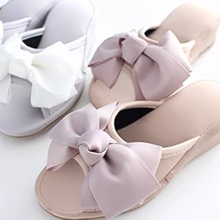 MIRAGE-STYLE 大きなリボン 美脚プリンセス ルームシューズ ヒールスリッパ L (23~24cm) グレーx白リボン お洒落 おしゃれ