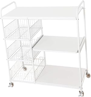 キッチンワゴン3段 カゴ付 【Lacuis ラクイーズ】 レンジ台 レンジボード キッチンボード キッチンラック レンジ棚 ロータイプ キッチン収納 スライド棚 スライドトレー シンプル おしゃれ 北欧 木目調 シェルフ 一人暮らし 新生活( ホワイト/ホワイト )
