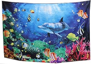 ND タペストリー おしゃれ 海 海中 海底 イルカ 熱帯魚 亀 シャチ 水族館 季節 インテリア 風景 大判 大きい 癒し こども 子供 部屋 飾り 飾り付け 窓 景色 オンライン飲み会 背景布 インスタ映え グッズ 小物 インテリア 布 テレワーク 背景 (デザイン5)