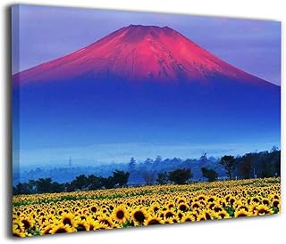 Steven Robert 赤富士 朝焼けの富士山と向日葵畑 アートパネル アートフレーム モダン アートボード インナー フレーム装飾画 ポスター おしゃれ 部屋飾り インテリア絵画 壁掛け 幸運 開運 縁起物 風水 パワースポット 木枠セット(40*50cm)