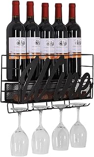 壁掛けメタルワインラック クラシックスタイル 7ボトルワインラック 脚付きグラスグラスラックホルダー5個付き エレガントな収納 バー、ワインセラー、地下室、キッチン、パントリーに