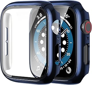 【2枚】Yoarmyt watch ケース40mm 44mm強化ガラス画面カバー PC series6/SE/5/4対応 ブルー