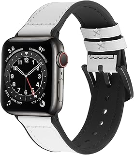 Apple Watch 42mm 44mm バンド コンパチブル、Fullmosa アップルウォッチバンドベルト 44mm/42mm/40mm/38mm 本革+シリコン apple watch series6/5/4/3/2/1,SEに対応 iwatchバンド スポーツ おしゃれ(ホワイト+ブラックハードウェア 42mm 44mm)