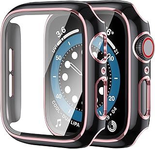 【2枚】Yoarmyt watch ケース44mm 40mm 強化ガラス画面カバー PC series6/SE/5/4対応 ブラック+ピンク