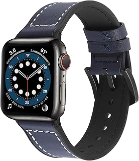 Apple Watch 38mm 40mm バンド コンパチブル、Fullmosa アップルウォッチバンドベルト 44mm/42mm/40mm/38mm 本革+シリコン apple watch series6/5/4/3/2/1,SEに対応 iwatchバンド スポーツ おしゃれ(紺色+ブラックハードウェア 38mm 40mm)