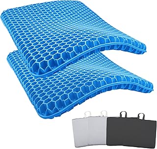 Yibaodan ゲルクッション 2枚組 二重 ハニカム構造 無重力 クッション 超通気 座布団 四季通用 蒸れない 座り心地 両面使用可能 在宅勤務 テレワーク オフィス 自宅 車 ゲーミングチェア 椅子用 洗えるカバー付き ブルー